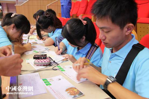 臺(tái)灣學(xué)生認(rèn)真寫(xiě)下對(duì)親人的祝福。(圖片來(lái)源:河南省臺(tái)辦)