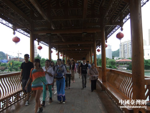 營員漫步在風(fēng)雨橋上。(圖片來源:貴州省臺(tái)辦)