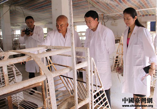 在開陽縣,調研組一行在縣委副書記覃昆,開陽縣政協副主席、縣委統戰(zhàn)部部長陳剛等陪同下考察了“國家級農業(yè)產業(yè)化重點龍頭企業(yè)”——貴陽臺農種養(yǎng)殖有限公司。貴陽臺協會副會長、臺農公司董事長李昭宏對新任主任來筑調研首站選定臺農企業(yè)非常感動,他認真向周素平一行介紹了飼料生產、銷售等生產經營現狀和環(huán)保改造及廢料再利用情況。周素平主任邊聽邊問,除了參觀飼料自動輸送設備、500立方沼氣發(fā)電設備外,還不顧天氣炎熱,徑直走進養(yǎng)殖現場查看,他對企業(yè)注重開發(fā)新技術和注重環(huán)保的理念表示肯定,希望可以將豬場的壓嘴式自動飲水器、培養(yǎng)小豬的保溫毯等小發(fā)明為更多農民所了解和共享。