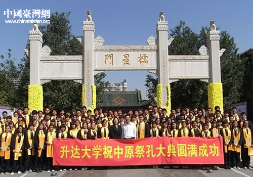 中國(guó)臺(tái)灣網(wǎng)10月9日鄭州消息 日前,鄭州福能電子產(chǎn)品有限公司董事長(zhǎng)謝長(zhǎng)安、鄭州福隆貿(mào)易公司董事長(zhǎng)張謹(jǐn)?shù)?6名在鄭臺(tái)商及鄭州升達(dá)經(jīng)貿(mào)管理學(xué)院百余名師生,參加了在鄭州文廟舉行的“壬辰年中原祭孔大典”。
