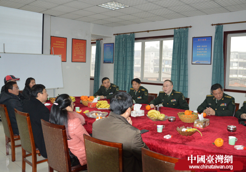 中國臺灣網1月16日瀘州消息 1月16日,瀘州市委臺辦主任韓俊平、市委研究室主任史乃廣、市婦聯主席陳孝冰一行帶著慰問品看望慰問了駐瀘某軍代室官兵,向官兵們送上新年的祝福。同時,三個部門負責人向軍代室通報了2012年各部門工作情況,軍代室首長也向慰問團一行作了國防形勢宣教。(中國臺灣網瀘州市委臺辦通訊員 周貞勇)
