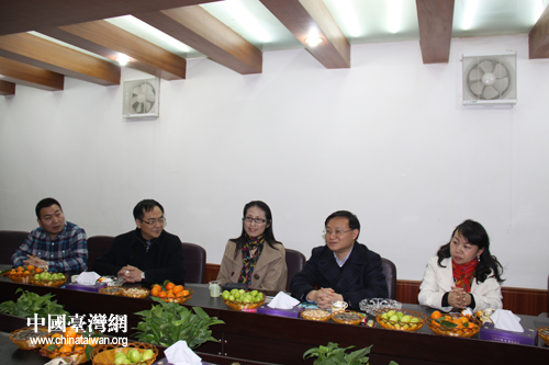 帥文(右二)在貴陽市臺協會,與在筑臺企、臺商代表座談、聯誼。(貴陽市臺辦 王康 攝)