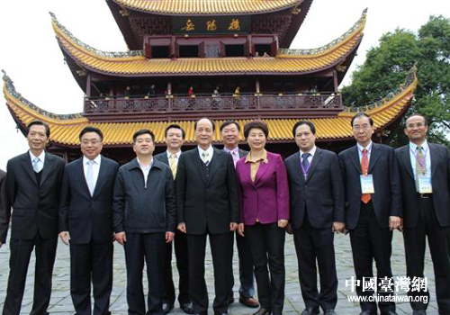 林中森董事長一行與岳陽市領(lǐng)導(dǎo)在岳陽樓前留影(圖片來源:岳陽市臺辦)