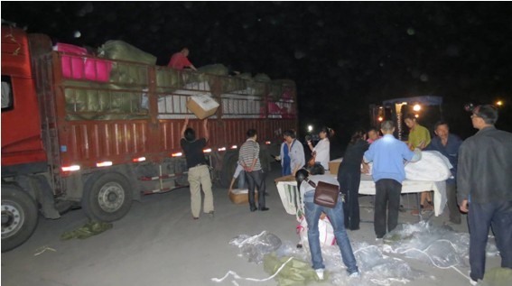 四川省眉山青神縣臺資企業向地震災區捐贈急震物資