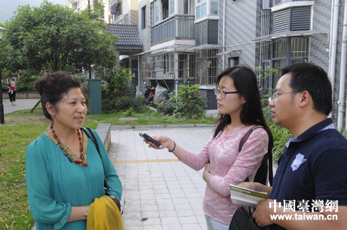 采訪都江堰愛心家園入戶群眾。(圖片來源:四川省臺辦)