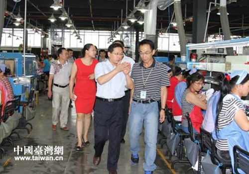 中國(guó)臺(tái)灣網(wǎng)7月23日祁陽(yáng)消息 日前,湖南省臺(tái)辦副主任劉珍瑜,省臺(tái)辦副巡視員羅愛(ài)民一行在市臺(tái)辦主任吳汝鳳的陪同下到祁陽(yáng)縣調(diào)研臺(tái)資企業(yè)凱盛鞋業(yè)。祁陽(yáng)縣委常委、副縣長(zhǎng)、統(tǒng)戰(zhàn)部長(zhǎng)左雅婷,統(tǒng)戰(zhàn)部副部長(zhǎng)張良佳,縣臺(tái)辦副主任趙富生等陪同調(diào)研。