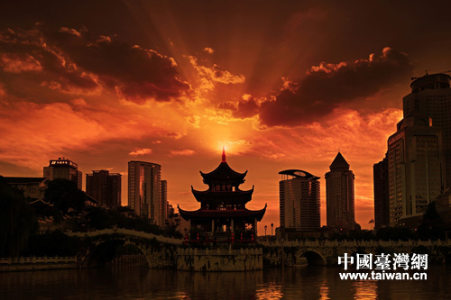 夕陽中的甲秀樓。(圖片來源:貴陽市臺辦)