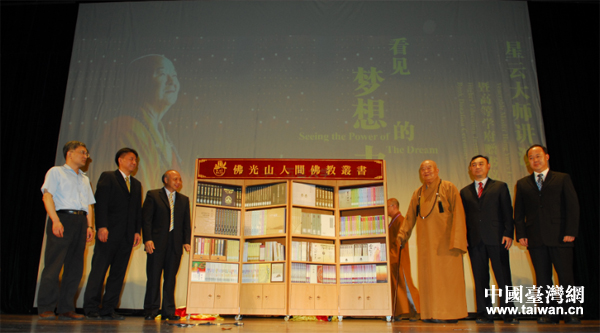 最后,星云大師代表臺灣國際佛光會中華總會向廣東省立中山圖書館、中山大學、暨南大學、華南師范大學、五邑大學等5家單位和高校致送了《百年佛緣》書冊。