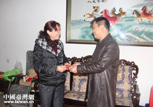 中國臺灣網1月24日石門消息 1月22日,中共石門縣委常委、統戰部長夏先雙走訪慰問常住臺胞趙詩賦先生和臺屬張桃元女士,為他們送去新春祝福。(中國臺灣網石門縣臺辦通訊員 粱瓊華)