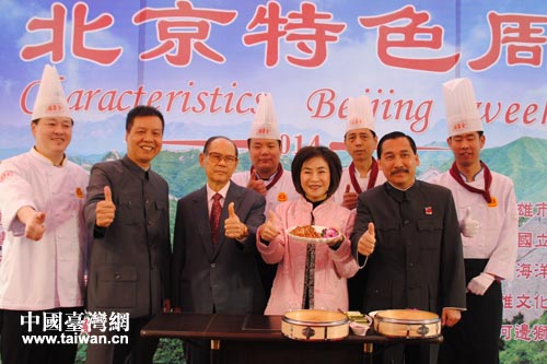 本屆北京特色周由北京市臺商投資服務中心、北京市西城區商業聯合會、北京臺灣會館和中華海峽兩岸企業交流協會等單位共同主辦,以臺灣民眾熟知的長城為主題,云集了包括全聚德、鶴年堂、華天集團、天福號、護國寺小吃、張一元、老舍茶館、榮寶齋、瑞蚨祥、工美集團、紅螺食品、便宜坊、慶豐包子鋪在內的北京市28家老字號企業,將京味小吃和民俗工藝等北京傳統文化的精髓展示給南臺灣人民,在馬年元宵節期間為南臺灣民眾送上來自大陸同胞的馬年新春吉祥祝福。(中國臺灣網北京通訊員 郭寧)