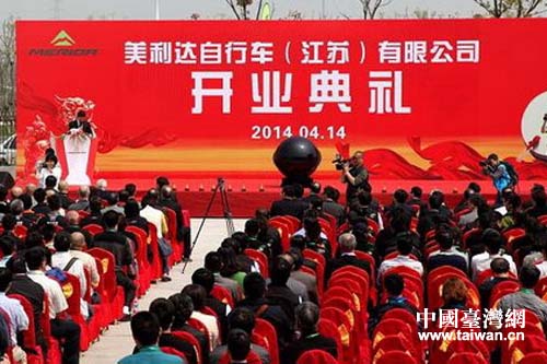 臺灣美利達自行車集團投資的中高檔自行車項目開業(yè)慶典現(xiàn)場。(圖片來源:南通市臺辦)