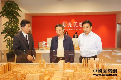 周敏謙主任(中)在新光天地調(diào)研項(xiàng)目建設(shè)情況。(圖片來(lái)源:四川省臺(tái)辦)