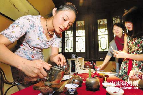 中國(guó)臺(tái)灣網(wǎng)5月12日杭州消息 喝茶,是一種大眾生活方式,而在浙江連橫紀(jì)念館話茶,則更有一番兩岸文化交流的情趣。日前,以“不語(yǔ)茶,可會(huì)心”為主題瑪瑙雅集之茶養(yǎng)生活動(dòng)在瑪瑙寺連橫紀(jì)念館舉行。瑪瑙雅集作為2014第十屆中國(guó)(杭州)國(guó)際名茶博覽會(huì)重要活動(dòng)之一,將新穎獨(dú)特的臺(tái)灣茶文化靜靜融入每一位茶文化愛好者的生活,以精致、生活、創(chuàng)意的視角促進(jìn)兩岸茶文化交流。