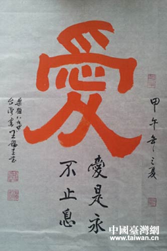 “1988年以來,我每年都要回大陸,有的時候是回家鄉看看,有的時候是參加大陸的書法展。通過書法,以字會友,以書法傳承中華文明,是一件有意義的事情。”“我也參加過韓國、日本等地舉辦的書法大展,將中華書法文化傳播到世界,也是件功德無量的事!