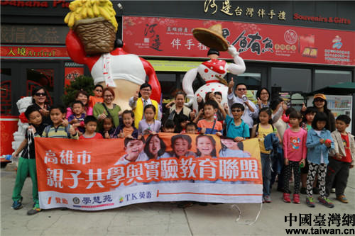 高雄市親子共學與實驗教育聯盟學生與家長合影。(中國臺灣網 栗琰 攝)