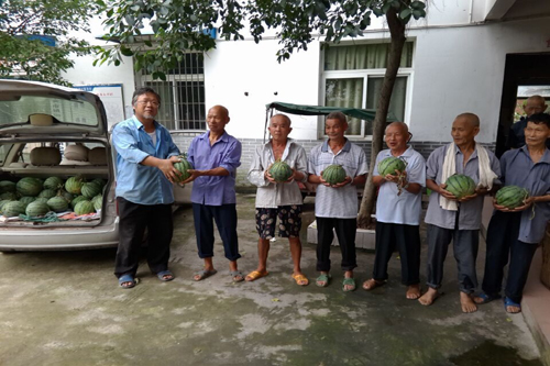 中國臺灣網7月9日自貢訊 近日,四川自貢市沿灘區安谷田園業主、臺胞吳振安先生在當地20名志愿者的協助下,先后前往沿灘區黃市鎮、永安鎮 、 劉山鄉等8個鄉鎮的敬老院,將從自己的生態種植園里采摘的3000多斤優質西瓜,送到1000多名老人手里,讓老人們在炎炎夏日里感受到了甘甜和清涼。(中國臺灣網、自貢市臺辦、沿灘區臺辦聯合報道)