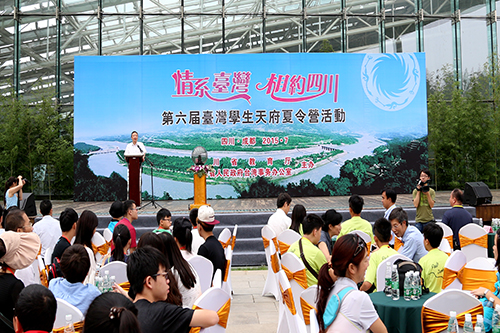 2015第六屆臺(tái)灣學(xué)生天府夏令營(yíng)開(kāi)營(yíng)儀式現(xiàn)場(chǎng)。(圖片來(lái)源:四川省臺(tái)辦)