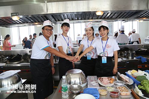 中國臺灣網7月27日成都訊 7月23日,“尋麻問辣品四川”川臺學生川菜文化體驗營在四川旅游學院舉行了一場妙趣橫生的廚藝比賽。20名來自臺灣與四川11所高校的大學生以4人一組為單位,精心制作出各式美味佳肴,為爭奪第一名各出奇招。