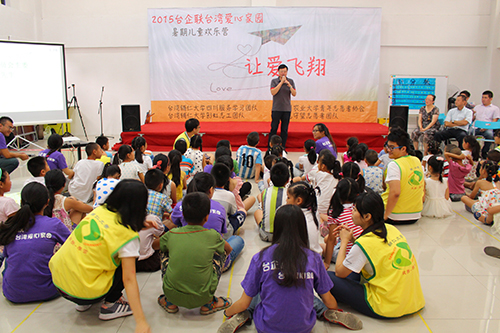 中國臺灣網(wǎng)7月31日成都訊 7月23至29日,由全國臺企聯(lián)都江堰臺灣愛心家園主辦,都江堰市臺辦、臺灣輔仁大學(xué)、四川農(nóng)業(yè)大學(xué)青年愛心協(xié)會協(xié)辦的“牽手兩岸大學(xué)生關(guān)愛留守兒童之讓愛飛翔”夏令營在成都都江堰舉辦。成都市臺協(xié)會長徐大偉,常務(wù)副會長唐中柱、張榮華以及都江堰市臺辦負(fù)責(zé)人應(yīng)邀出席活動。