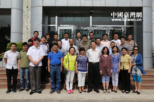 理事們?cè)谄暇熑咸炎芽萍奸_發(fā)有限公司參觀合影。(北京市臺(tái)聯(lián) 朱小龍 攝)