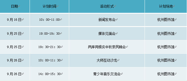 注:9月16日-10月8日在杭州圖書館每天進(jìn)行相關(guān)主題音樂展覽