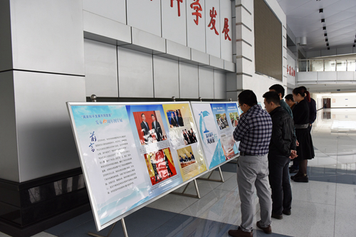 旌陽區(qū)機關干部觀看圖片展。(圖片來源:德陽市旌陽區(qū)臺辦)