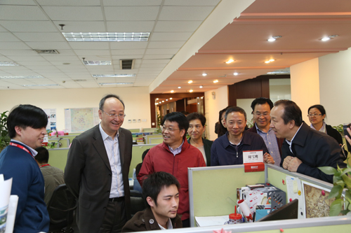 四川省委副書記尹力(左二)在臺資企業(yè)縱橫壹旅游科技有限公司調(diào)研。