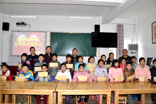 廣元市臺(tái)辦主任任文剛一行在劍閣縣龍?jiān)存?zhèn)小學(xué)發(fā)放臺(tái)商助學(xué)款。