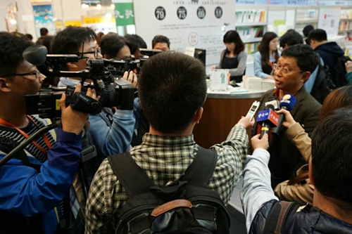 臺(tái)灣媒體采訪阿來(lái)。