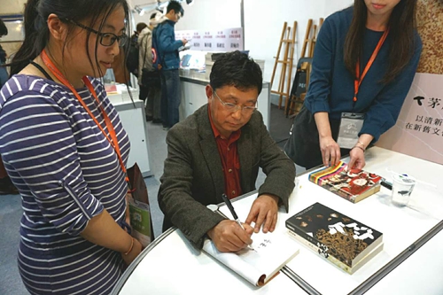 阿來(lái)為臺(tái)灣熱心讀者現(xiàn)場(chǎng)簽售新書(shū)。