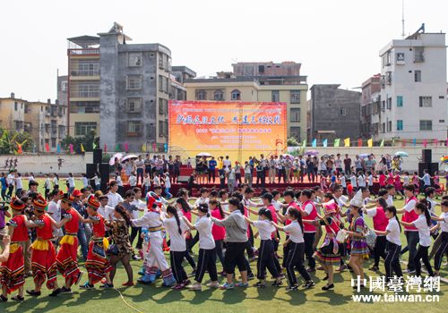 年輕,沒有距離;年輕,沒有什么不可以。桂臺(tái)兩地青年學(xué)子初次相見,卻格外親切,無話不談,老朋友一般。壯校師生身著民族節(jié)日盛裝,與佛光大學(xué)青年師生一起在美麗的校園漫步,一起觀看民族精品歌舞展演。佛光大學(xué)的青年學(xué)生們還興致勃勃地加入到拋繡球、竹杠舞等活動(dòng)中,與壯校學(xué)生一起體驗(yàn)民族體育競(jìng)技活動(dòng)的魅力。操場(chǎng)上,烈日炎炎,卻擋不住兩地學(xué)生如火的熱情,他們手牽手、肩并肩,和著《我們都是一家人》的歡快樂曲跳起多耶舞,整個(gè)操場(chǎng)成為歡樂的海洋。