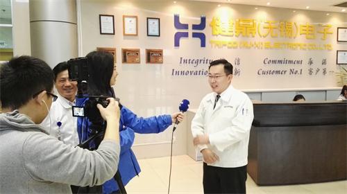 圖為臺灣攝制組在臺企健鼎(無錫)電子公司拍攝。