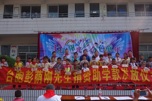 眉山市臺辦共計為盤鰲鄉(xiāng)中心小學、保勝小學、慈航鎮(zhèn)中心小學等學校的50名受助學生發(fā)放2.5萬元助學金,勉勵受資助的孩子們牢記彭蔭剛先生及社會各界的關心的幫助,常懷感恩之心。
