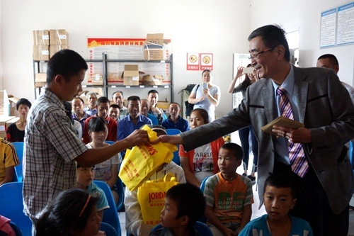 張慶麟先生向受資助學生贈送助學金和學習用品