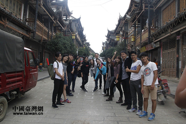 兩岸青年在古香古色的街道開心街拍。(中國臺灣網 王亞靜 攝)
