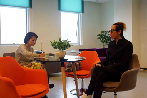 臺灣中評社總編輯林淑玲采訪臺灣創業青年林奇憲(右)