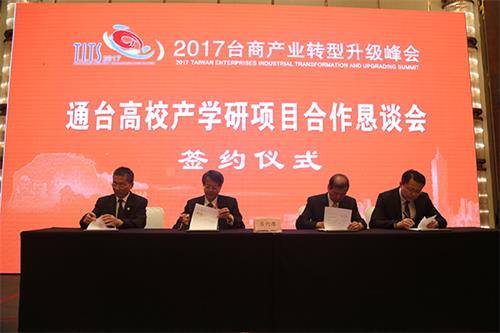 圖為南通臺(tái)灣高校產(chǎn)學(xué)研項(xiàng)目簽約現(xiàn)場(chǎng)。
