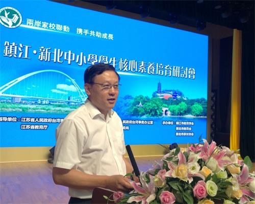 鎮江市教育局黨委成員、辦公室主任竇玉成先生首先致辭。竇玉成說,這是兩岸教育界的一次有益互動,也是兩地的一次友好往來。“在教育這個問題上,兩岸有太多互研互通、互學互鑒的空間。此次研討就是希望雙方以開放的視野共同成長,以家校聯動提升協作合力。”
