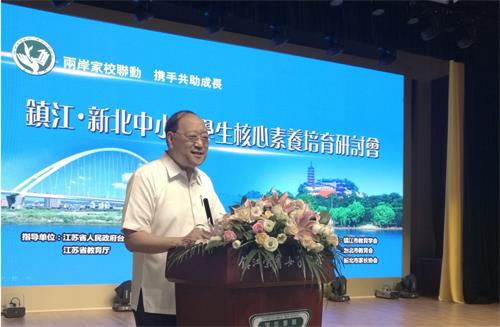 中國臺灣網8月14日鎮江訊 8月12日上午,鎮江·新北中小學學生核心素養培育研討會在鎮江崇實女中召開,省臺辦領導和相關部門負責人、市臺辦、市教育局、市教育學會等單位領導與來自臺灣新北市中小學校長協會、家長協會領導,新北市多所中小學的學生代表等70多名和鎮江市中小學校長代表、家長委員會代表、學生代表共近200人出席研討會。
