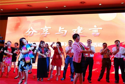 活動還開設(shè)了微信互動環(huán)節(jié),遴選出了十個“幸福故事”和十句“幸福箴言”,進行了現(xiàn)場分享。“我做過最不后悔的決定就是嫁給你”“有你才有了完整的家”“愛是無言的,我懂你”“幸福很簡單,過馬路有人牽著就好”“你帶我到天涯海角,我?guī)一刈鎳鴾嘏膽驯А薄痪渚鋹鄣谋戆祝尙F(xiàn)場的空氣里都彌漫著愛的氣息。最后,在《我們都是一家人》的歌聲中,大家手牽著手,載歌載舞,共同表達著對兩岸有情人終成眷屬、兩岸永遠是一家人的美好祝愿。