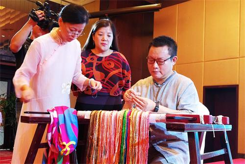 圖為沈德龍現(xiàn)場展現(xiàn)繡藝。