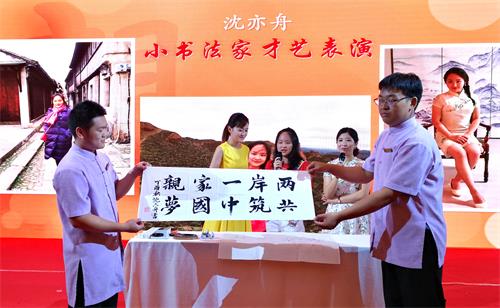 1987年兩岸恢復(fù)民間交往以來,兩岸婚姻家庭走過30年的風雨歷程,目前共有37.8萬對兩岸配偶喜結(jié)良緣,兩岸婚姻數(shù)量以每年約一萬對的速度增長。兩岸婚姻家庭不僅成為兩岸血脈相連的重要紐帶,也是促進兩岸交流融合的重要力量。在活動中,許多兩岸婚姻家庭的“愛的結(jié)晶”也來到現(xiàn)場,小臺胞們一起玩、一起鬧,其樂融融。有的還展示了自己的獨特才藝,臺商子女鄭程嶸和鄭亦珊兄妹的京劇表演《蘇三起解》、蘇州小臺胞沈亦舟的現(xiàn)場揮毫“兩岸一家親,共筑中國夢”,贏得了滿堂喝彩。