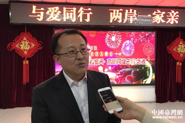 據(jù)悉,本次兩岸視頻連線活動由北京市海峽兩岸民間交流促進(jìn)會主辦,北京豐臺區(qū)右安門街道與高雄三民區(qū)河堤社區(qū)、海淀區(qū)甘家口街道與高雄新興區(qū)、石景山區(qū)五里坨街道和高雄前金區(qū),北京市海淀區(qū)蘇家坨鎮(zhèn)與高雄恒春鎮(zhèn)通過視頻連線,以傳承和弘揚(yáng)中華民族傳統(tǒng)文化為主旨,實(shí)現(xiàn)兩岸大朋友、小朋友、新朋友、老朋友互動于千里之外,“齊聚一堂”慶元宵。(完)