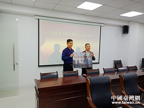 泉州市臺(tái)辦副主任李朝暉向園區(qū)管委會(huì)授牌。(圖片來(lái)源:安溪縣臺(tái)辦)