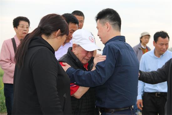 4月21日上午,金貴發老人攜妻兒在家鄉親屬的陪同下分別來到父母和兄弟墳前祭祖,金貴發終將數十年思緒宣泄,泣不成聲。在母親的墳頭,他含著淚水,深情地表白道:回家的路太漫長了,明年我還會回來,為您立碑。