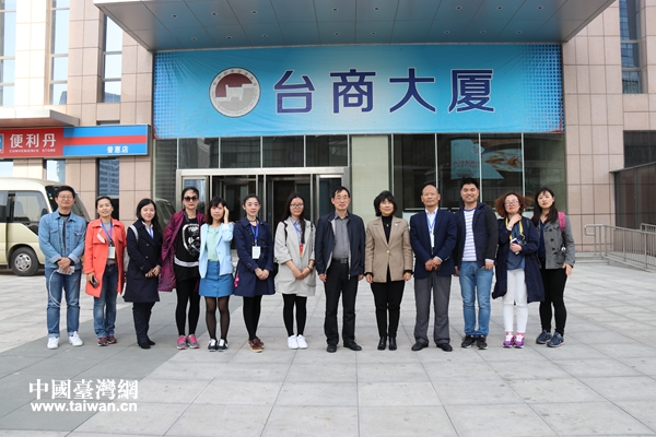 聯(lián)合采訪團在臺商大廈前合影留念。(圖片來源:河南省臺辦)