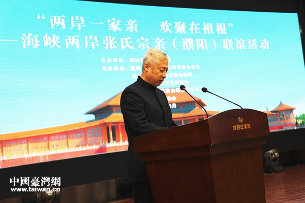中國臺灣網5月3日濮陽訊 4月27日,“兩岸一家親歡聚在祖根——海峽兩岸張氏宗親(濮陽)聯誼活動”在濮陽舉行。濮陽市市長宋殿宇出席活動并致歡迎辭。全國政協常委、臺盟中央副主席、全國臺聯副會長張澤熙,國臺辦交流局副局長董碧幽,省商務廳廳長張延明,省政協港澳臺僑和外事委員會主任楊京偉,省臺辦副主任杜春景,全國臺企聯首任會長、現任榮譽會長張漢文,以及臺灣張廖簡宗親總會,臺灣高雄、臺中、宜蘭和閩東南等地區的張氏宗親代表團成員,濮陽市領導張禮杰、張宏義、張懷璽等出席聯誼活動。聯誼活動由濮陽市政協主席鄭大文主持。