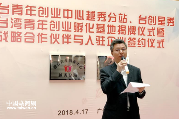 廣州市臺辦主任曾衛東、副主任鄺偉斐及越秀區委常委、統戰部部長謝偉光等領導共同為“穗臺青年創業中心越秀分站”、“臺創星秀臺灣青年創業孵化基地”揭牌。