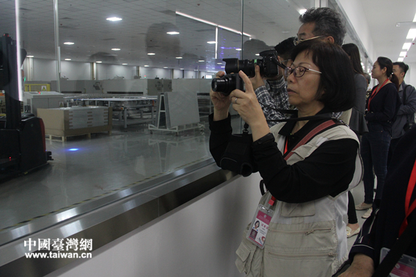 同樣被吸引的還有臺灣攝影家交流協(xié)會常務(wù)副理事、參訪團(tuán)團(tuán)長謝美華。與李祐宏不同,吸引她的是臺資企業(yè)中,融入了陜西當(dāng)?shù)氐娜宋脑亍R俑。“這機(jī)器排布方法,大概就是按照兵馬俑的排列方式布置的”,謝美華指著放在機(jī)器前面的兵馬俑圖片告訴記者,“臺資企業(yè)已經(jīng)把陜西的人文元素很好的融入其中,說明企業(yè)已經(jīng)落地生根。”