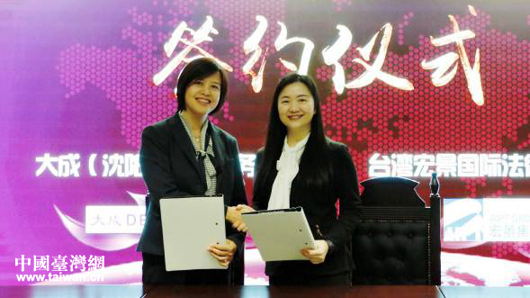 中國臺灣網5月29日沈陽訊 日前,為進一步打造沈陽國際化營商環境,促進沈臺兩地法律界的交流合作,服務在沈臺商發展,經市臺辦溝通協調,臺灣宏景國際法律事務所所長鄒純忻女士和北京大成律師事務所沈陽分所副主任李盾女士,分別代表兩家律師事務所在沈簽署戰略合作協議。沈陽市臺辦副主任朱軍和沈陽市仲裁辦副主任張進出席簽約儀式。
